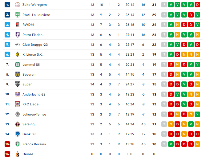 Deinze est effectivement éliminé, dommage car le FC Seraing avait gagné contre cette équipe => 3 pts de moins pour Seraing mais l'objectif est maintenant de ne pas finir dernier (et Seraing n'a qu'un point d'avance sur le dernier);