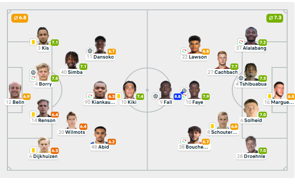 victoire de Seraing à l'extérieur, à noter la très bonne note de Fall