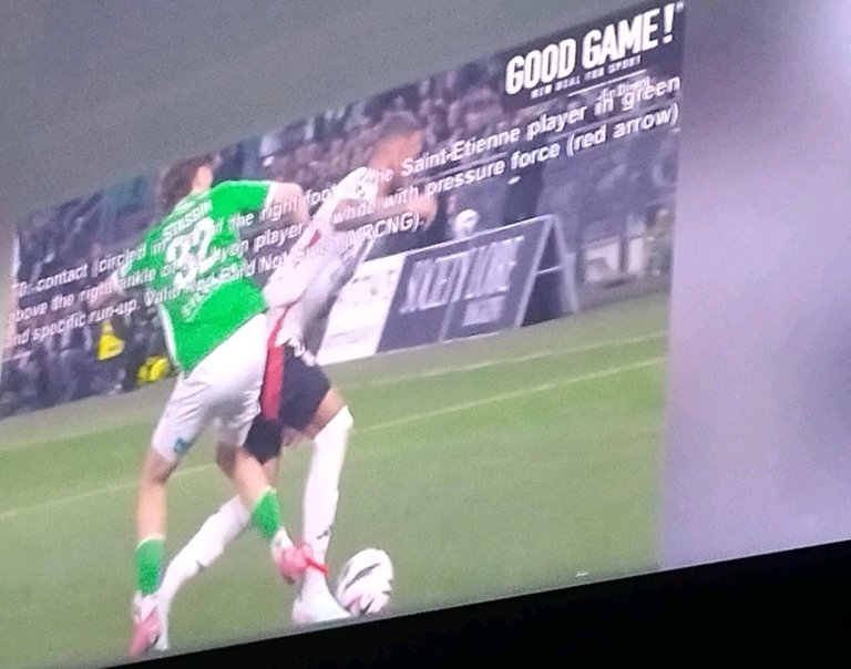 La particularité de la faute de Stassin hier c'est : 1) l'orientation du corps de Tolisso, qui a pour conséquence l'entorse d'ailleurs ; 2) le fait que le pied ne glisse pas hors du pied mais sur lui, et donc que le contact se prolonge, ce qui rend la faute impressionnante.