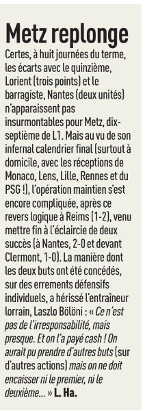 Re: L’Équipe du 18/03 : Metz replonge