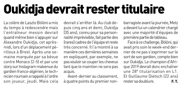 L’Équipe du 07/04 : Oukidja devrait rester titulaire