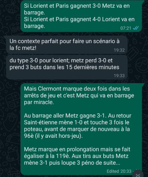 Mon prono: on va en barrage in extremis (Lorient 3-2 Clermont, Metz 0-6 PSG), et ensuite...
