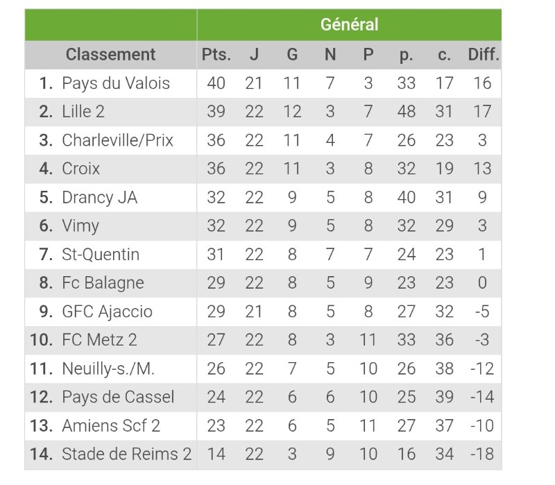 Pays de Cassel a pris une valise et Neuilly a fait match nul. ça reste serré en bas de tableau, seul la réserve de Reims est condamnée.