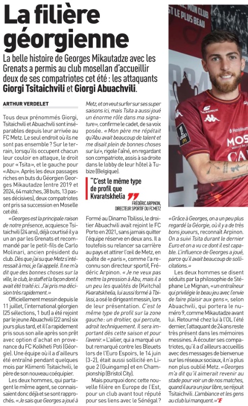 un échange georges / sané ?bricooo a écrit :Le titre « Mikautadze veut revenir à Metz! » pour dire qu’il veut voir ses amis géorgiens