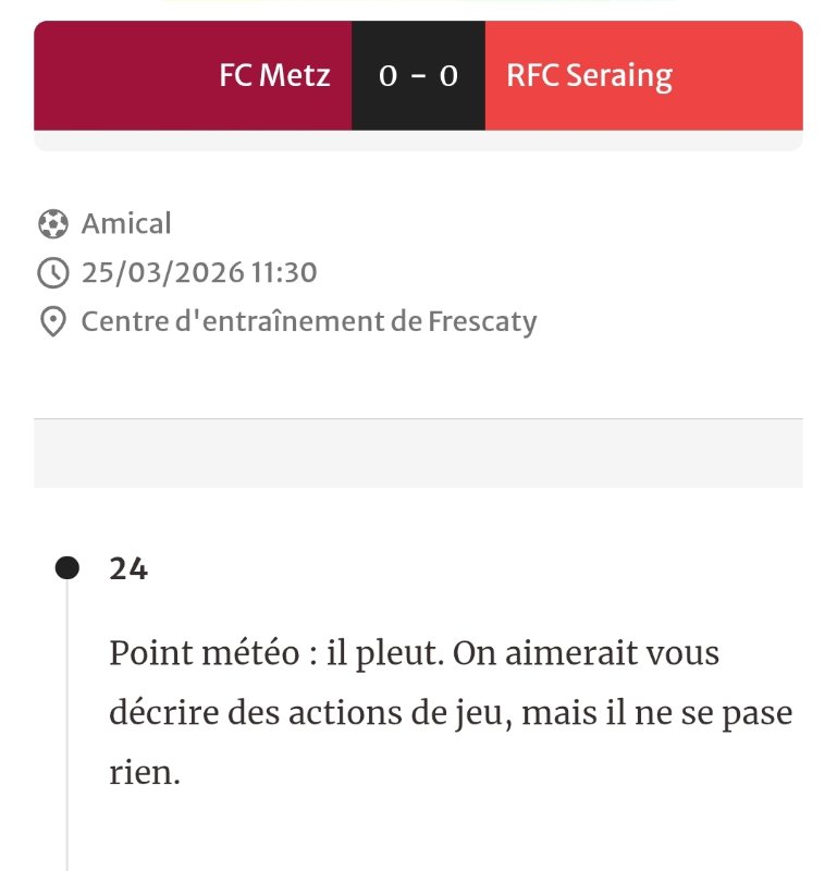 En face même si c'est de la D2 belge, on n'est pas sur la même dynamiqueMatt 92 a écrit : Vous allez voir qu'on va être capables de perdre![]()